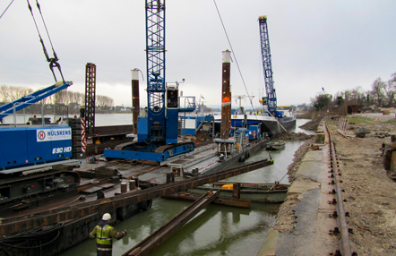 Vorbereitende Arbeiten zum Einbau der Stahlspundwand